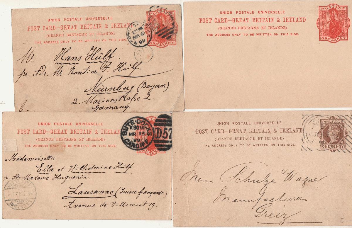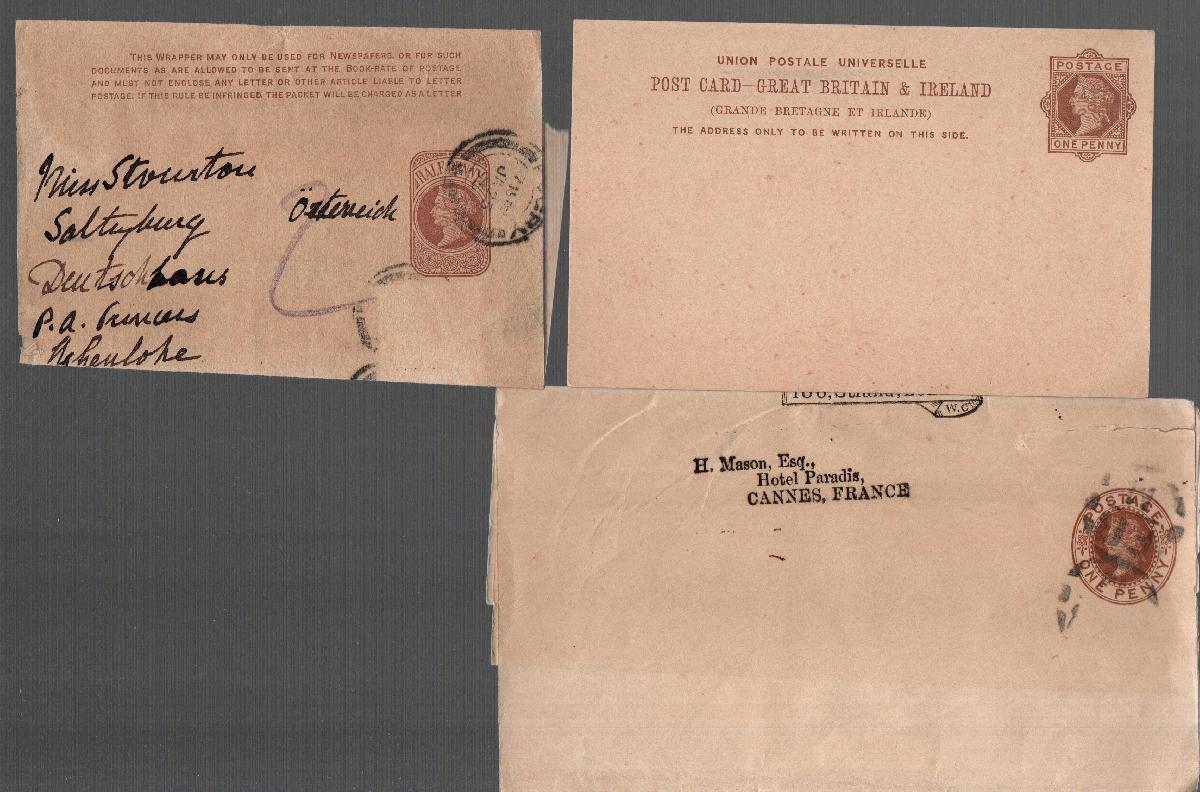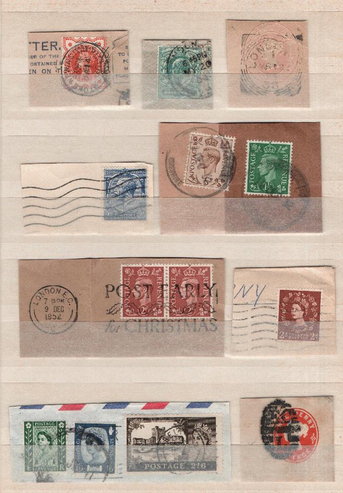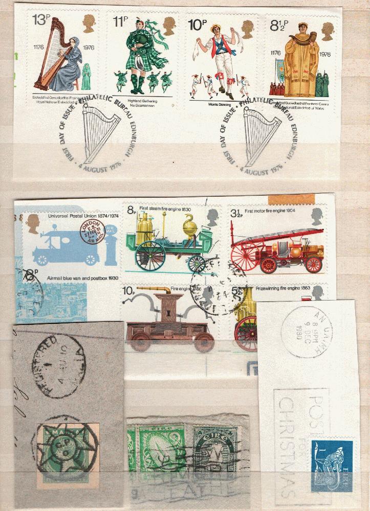 Lot GB mit Ganzsachen (auch Streifband), Ansichtskarten, Marken auf Papier, dabei etwas Irland. Ansichtskarten tw. mit Bedarfs-/Knickspuren.