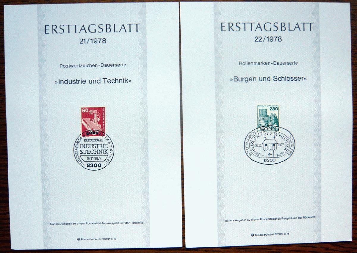Bund Ersttagsblätter von 1978, Nummer 1 - 22. Bund Ersttagsblätter von 1979, Nummer 1 - 19.