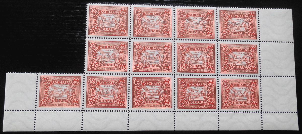 Nichtamtliche Ausgabe Aschaffenburg **: Teilbogen unten mit 2 Eckrandstücken, III A
