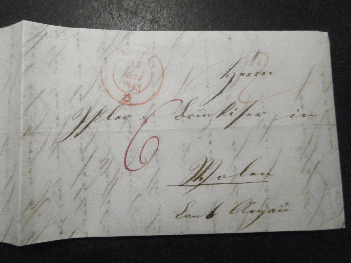 Los: Nr. 521.0587 Schweiz Vorphila Faltbrief+Inhalt(12,5x8,5cm)) DK rot Basel 17.5.1843(29mm) austaxiert nach Wohlen