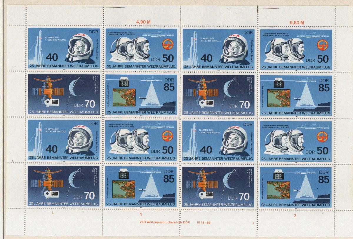 DDR Zd-Bogen 25 J. bemannter Weltraumflug 1986 ** sowie Nat. Brfm.-Ausst. Magdeburg 1989, div. Streifen/Herzst. aus Zwischensteg-Bogen **.