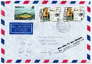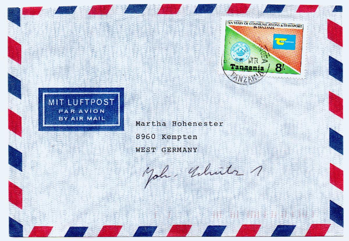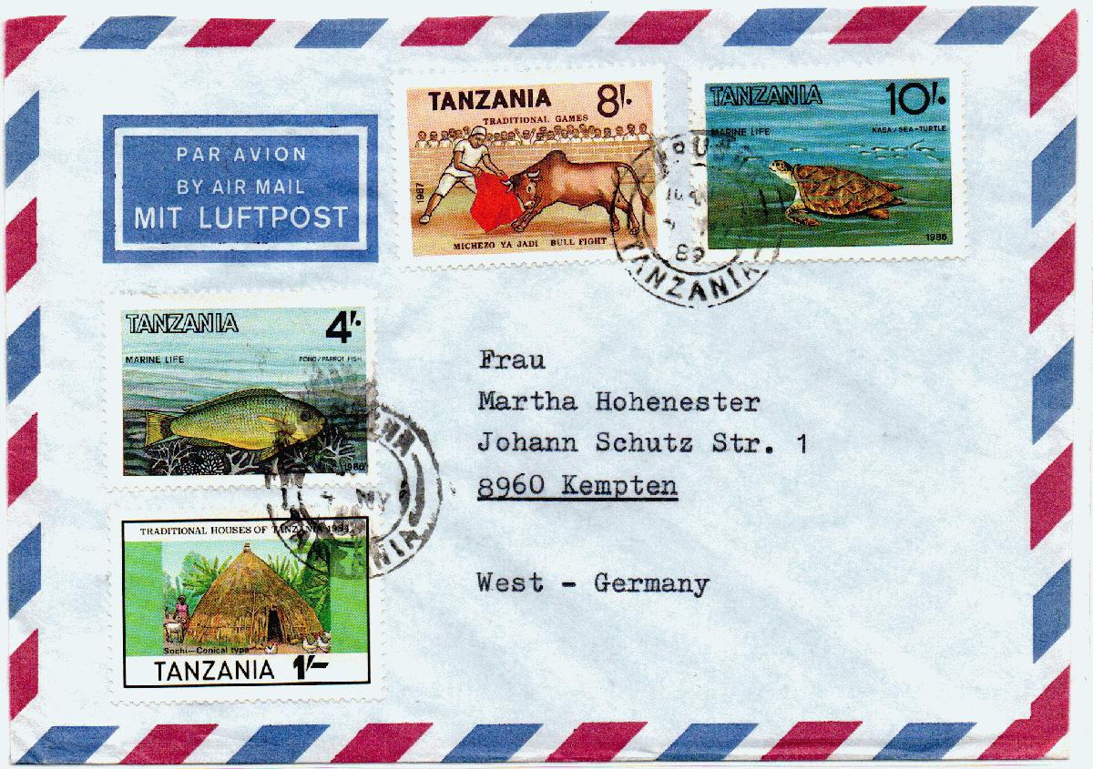 Hier biete ich drei Luftpostbriefe aus Tansania an. Alle gelaufen nach Kempten. Bei zwei Briefen war die Adresse nicht komplett, siehe Bilder.