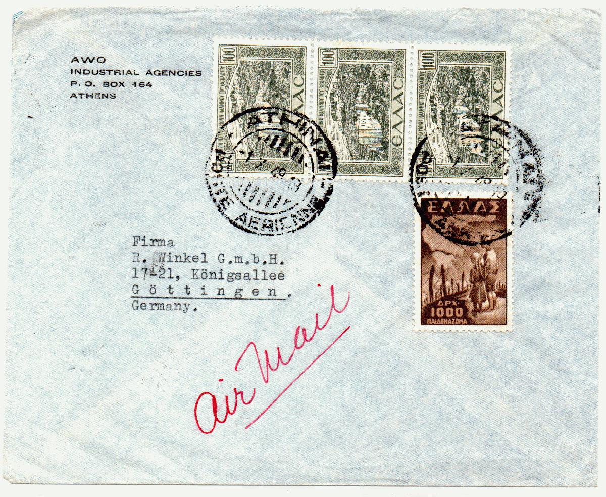Brief von Athen nach Göttingen, scheinbar als Luftpost verschickt.