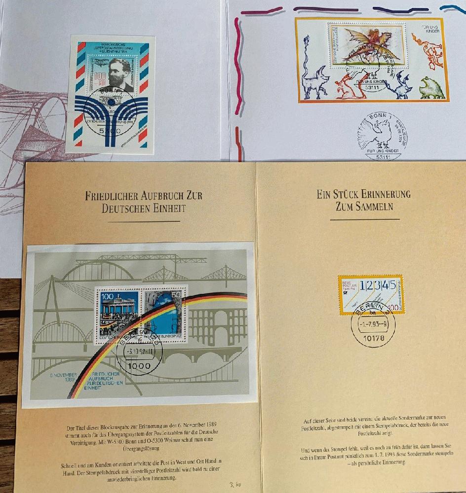 Block 22 und 30 Ersttagsstempel auf Jahresgabe des Postdiensts, Block 24 mit Sonderstempel Berlin 120 3.10.92, Michel 10,10 €
