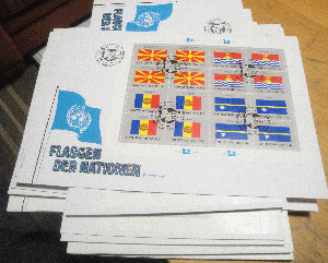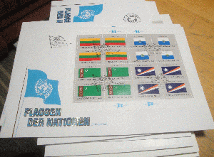 FDC Lot Flaggenserie ex 1987-2001. 20 großf. FDC, jew. mit kompl. KLB, Philswiss.