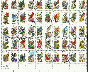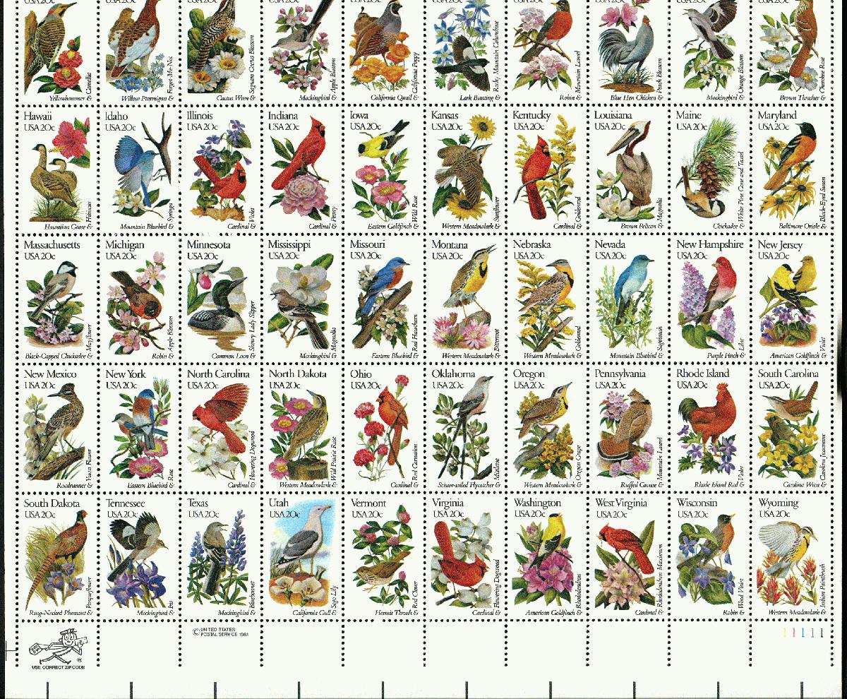 Biete einen wunderschönen postfrischen Zusammendruck-Bogen USA mit verschiedenen Vogelabbildungen aus dem Jahr 1981.
