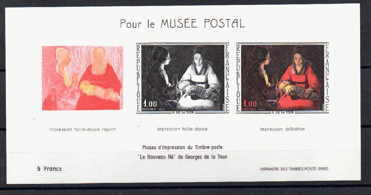 Zur Finanzierung der Einrichtung des Pariser Postmuseums wurde Ende 1966 der nicht postgültige Sonderdruck auf Kartonpapier ausgegeben. Dieser Sonderdruck, welcher nur per Bestellung erhaltbar war, zeigt das Entstehen der Mi.Nr. 1552 in drei Durchgängen.
