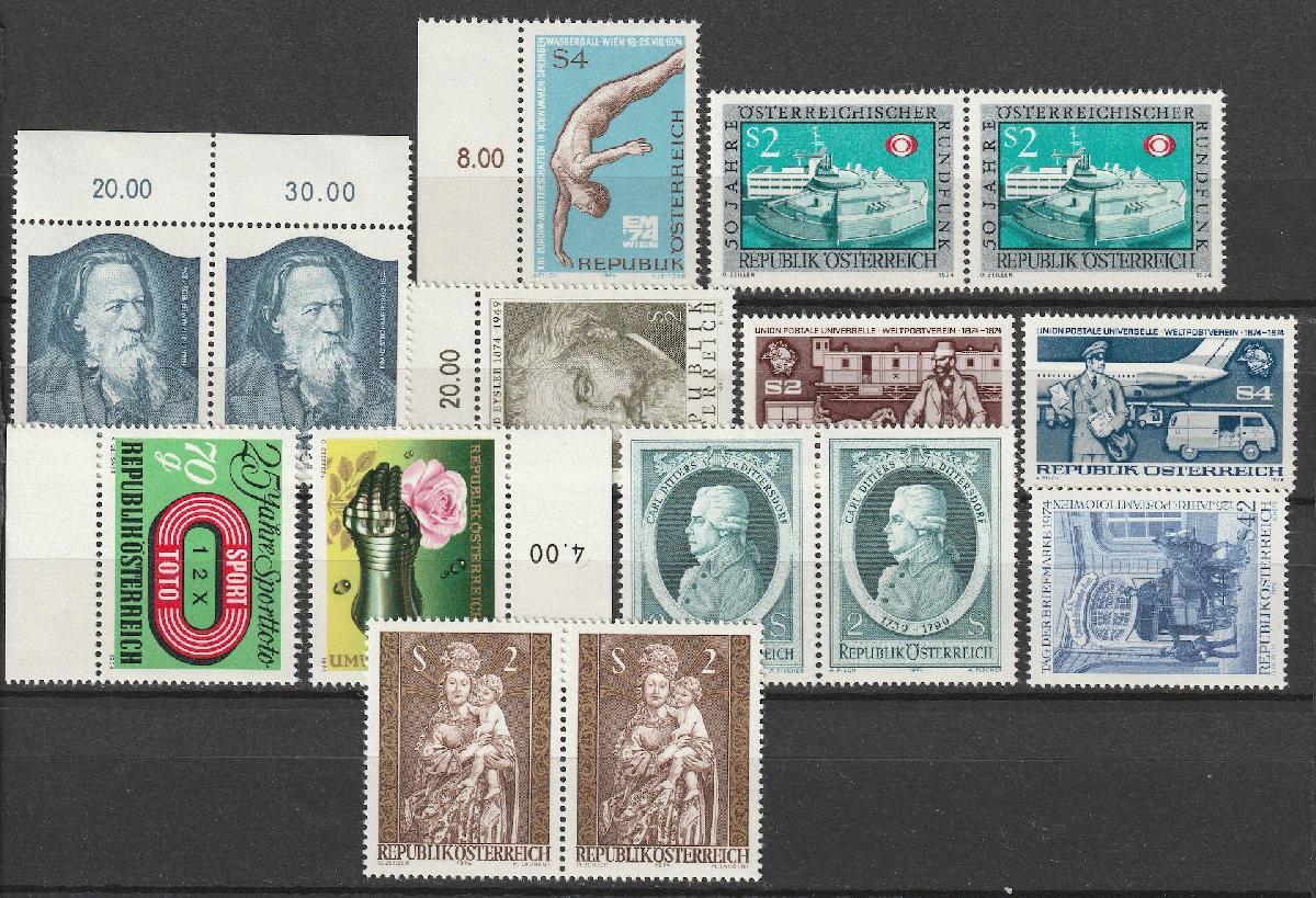 Österreich 1973-1974 Lot aus Mi1410-1472, postfrisch (Mi 21,--) Kein Falz oder Falzreste Paypal = möglich