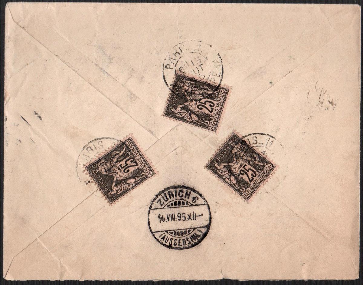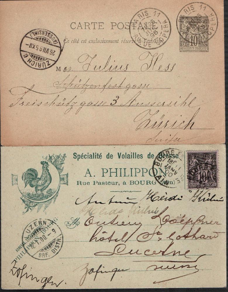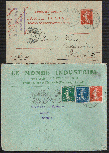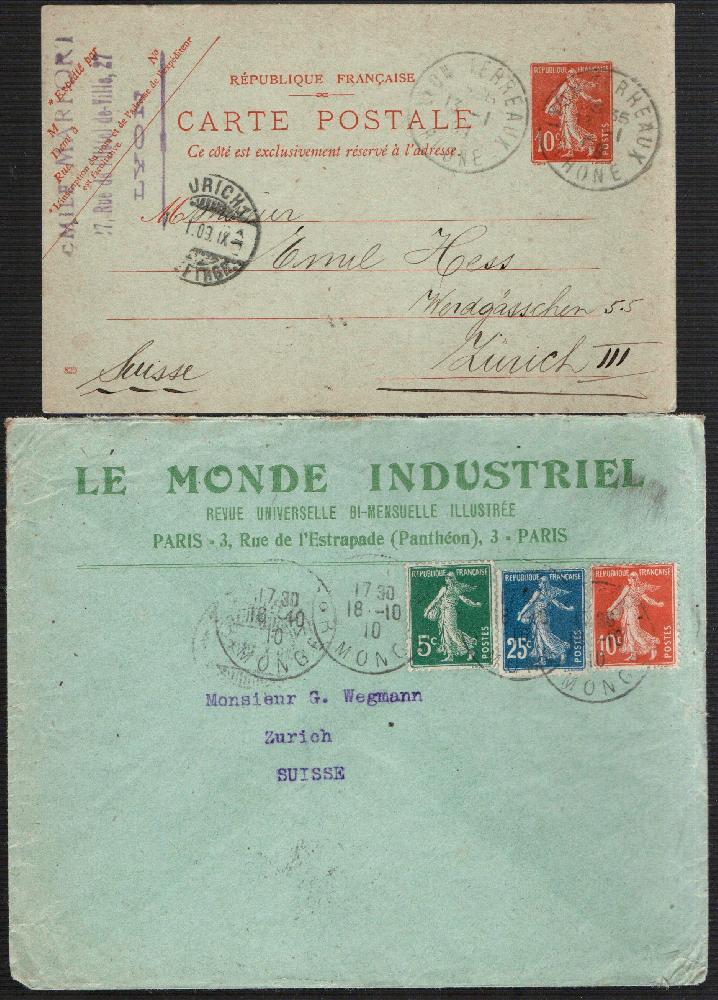 Belege Lot Frankreich 1895-1938. Briefe u. Ganzsachen, 1x Frankatur Rückseite, 7 Belege.