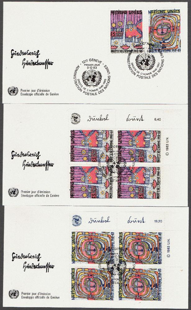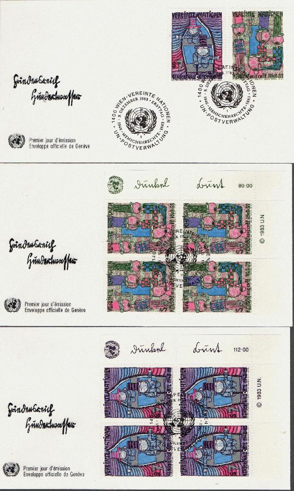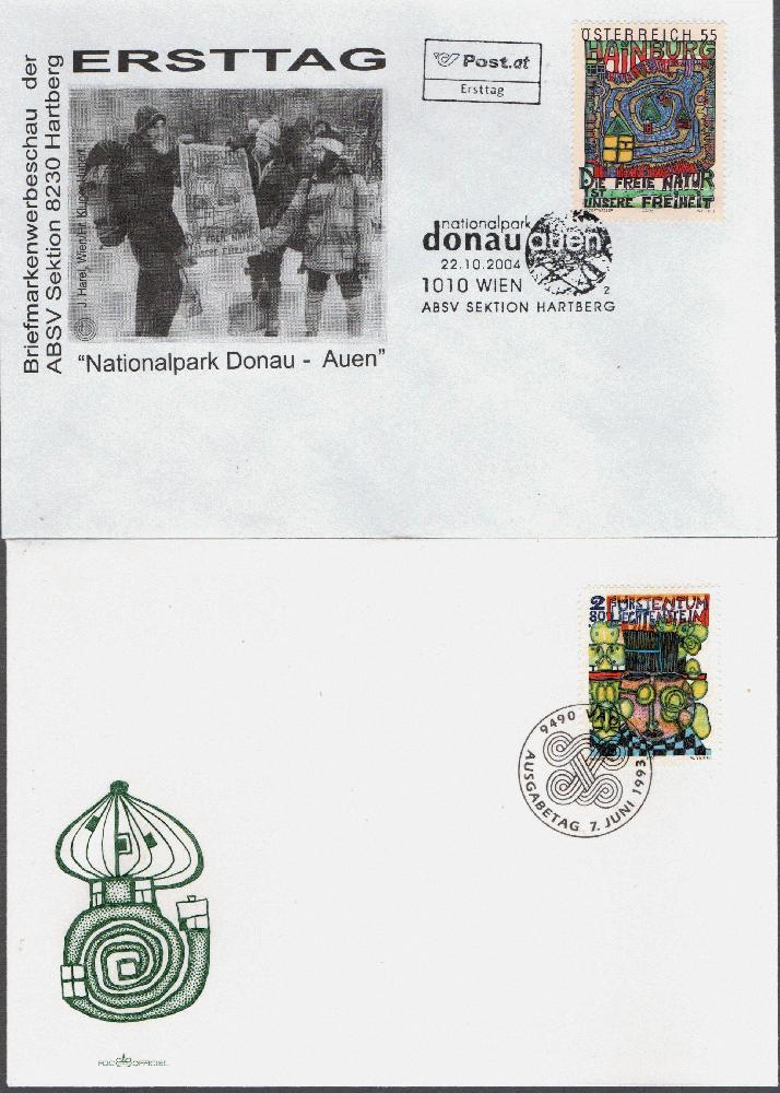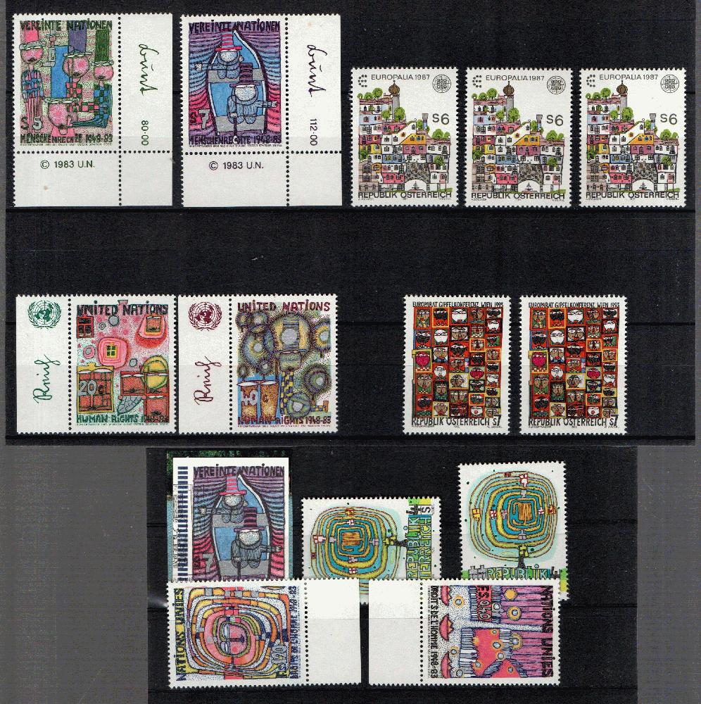 Div. Motivausgaben F. Hundertwasser. Österreich, Liechtenstein, UNO.