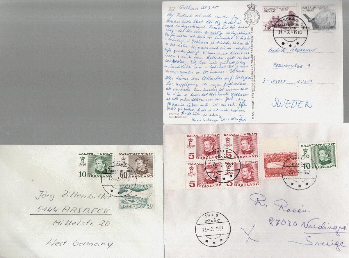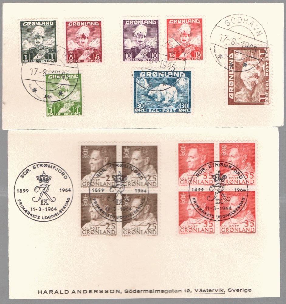 Grönland Belege Lot. Dabei FDC, einige Ausl.briefe, Blockausgaben usw.