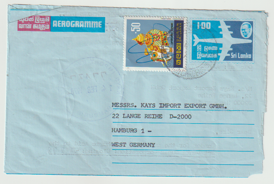 Sri Lanka: Ganzsache Aerogramm mit Zusatzfrankatur
