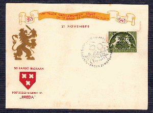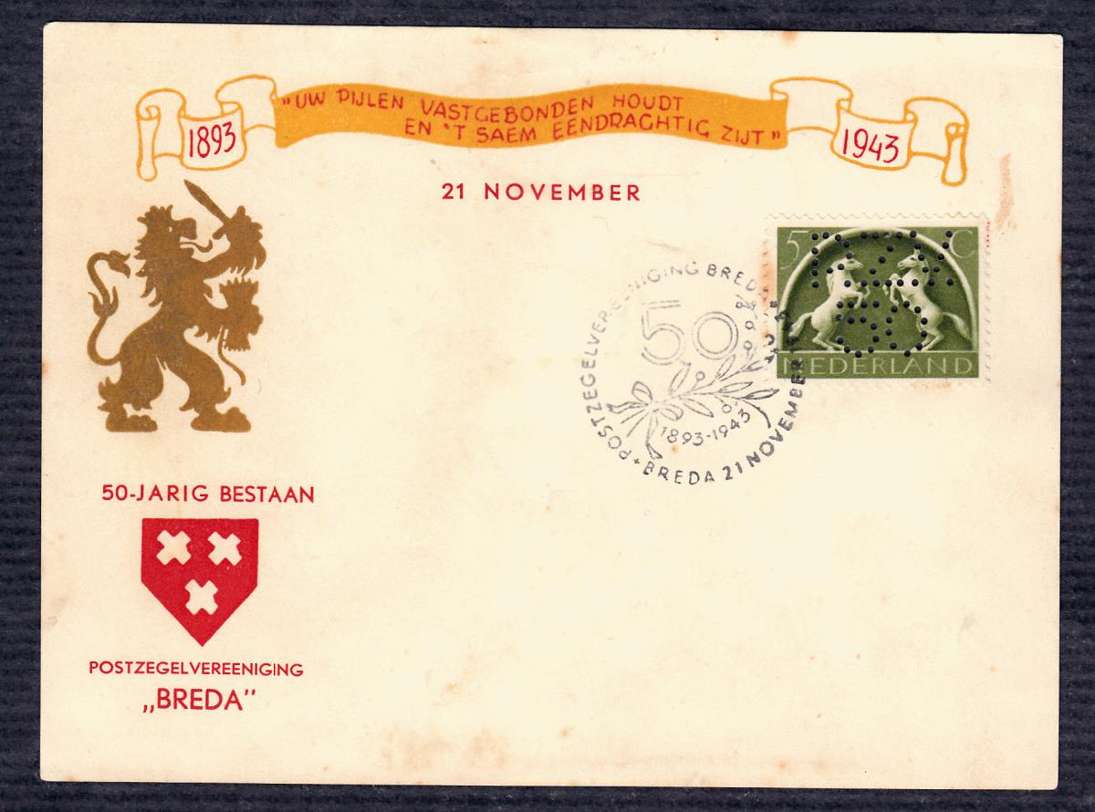 Postvereinigung bred 50 Jahre Sonderstempel+perfin