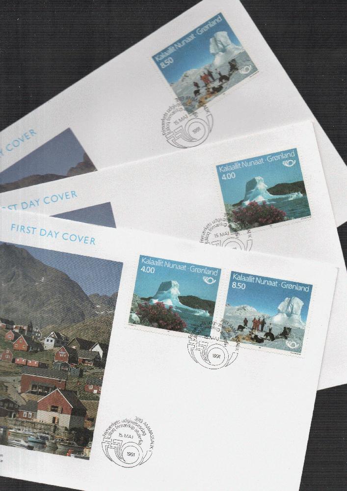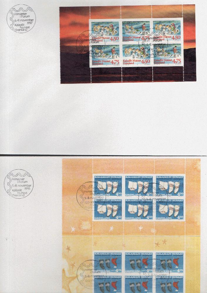 Belege Lot Grönland. ESST bzw. Briefmarkenforum-Sonderstempel, alle großformatig.