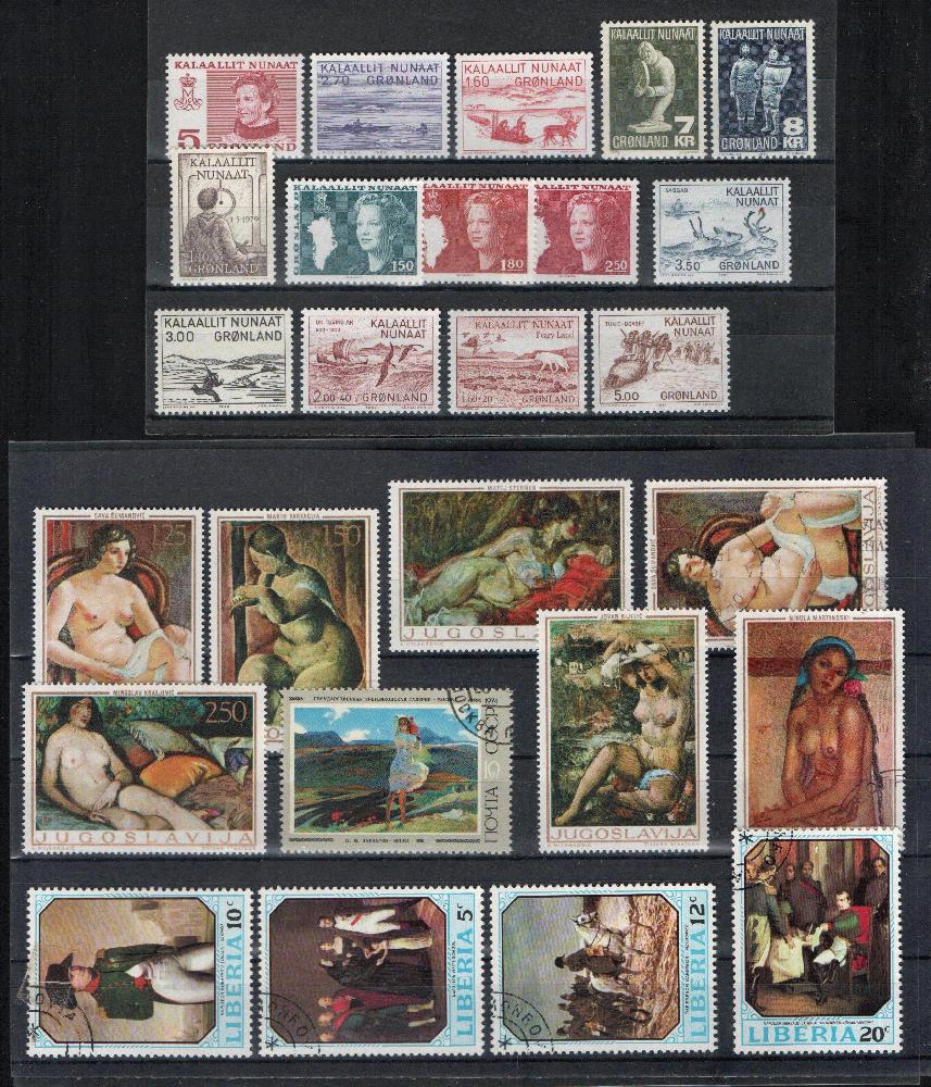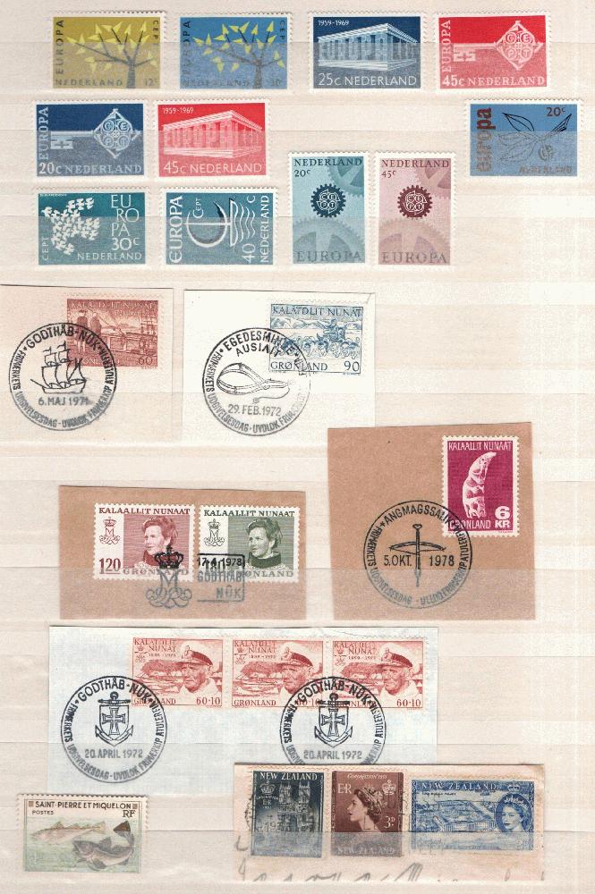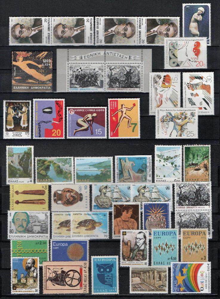 Lot International **/gest., u.a. Zypern, Griechenland, Grönland, Frankreich, Lettland, Estland. Dabei Ausschnitte, wenige Marken mit Falz.