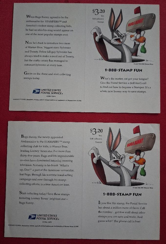 USA 2 Folienblätter Top Erhaltung Bugs Bunny und Sylvester und Tweety