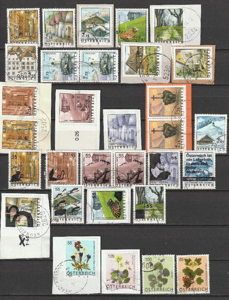 Österreich 2002-2007 Euro-FM Lot gest 2002-2006 FM Ferienland Österreich, Lot gest. 2002 Mi2363-67 2003 Mi2415-18 2003 Mi2420,2422,2423,2439,2454, 2004 Mi2499 2005 Mi2509-16 2007 FM Blumen Mi2631,2633,2652,2680 Alle Marken gest
