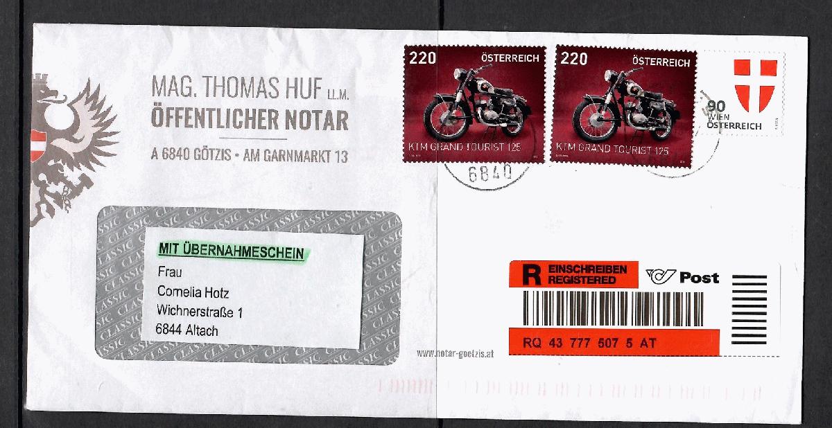 Los: Nr. 533.0617 AT-Einschreibbrief Jg2018 mit 2x Motorradmarken