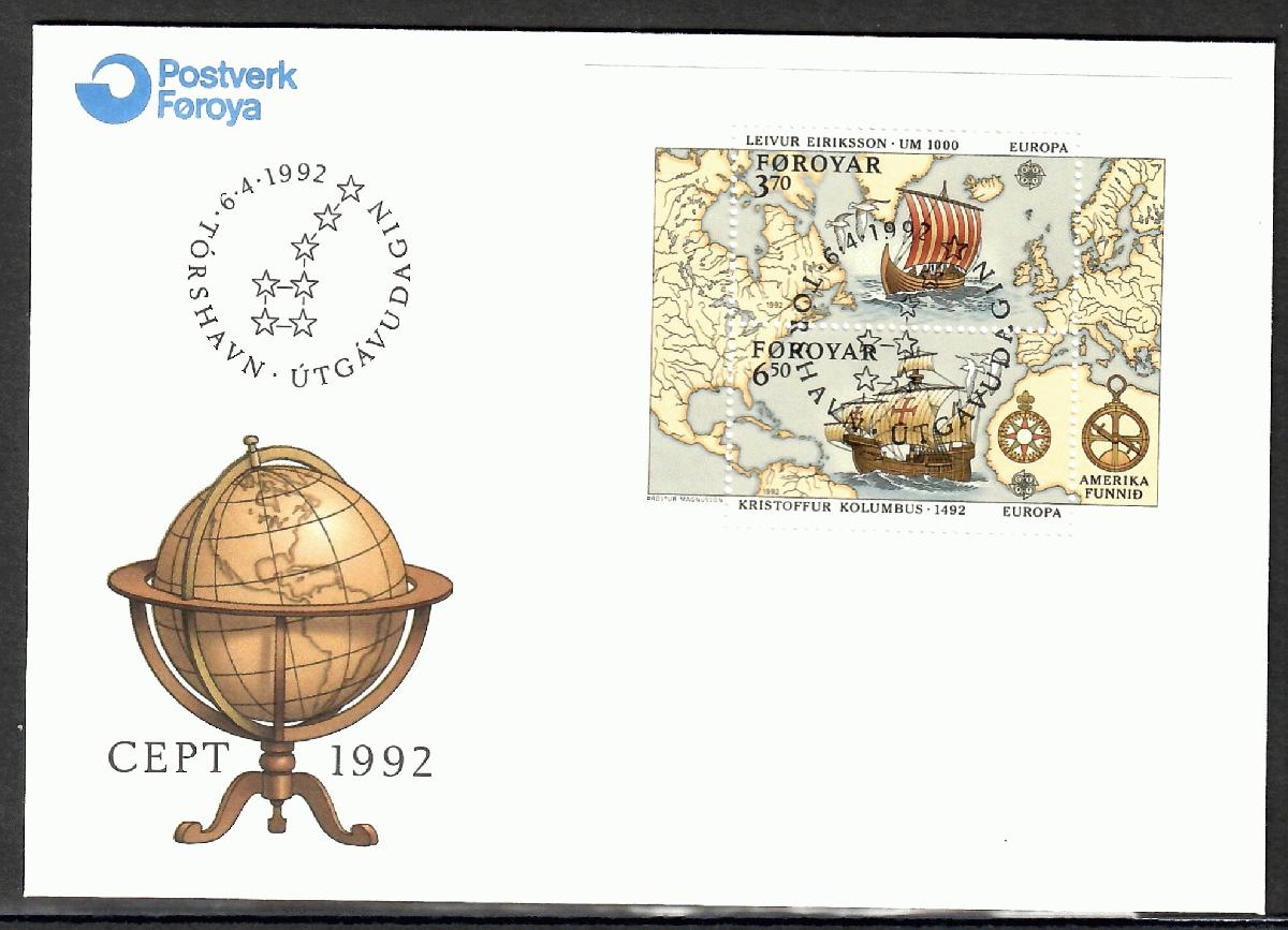 Los: Nr. 533.0475 Färöer-FDC Block5 Jg1992 Entdeckung Amerikas