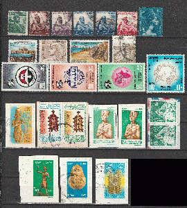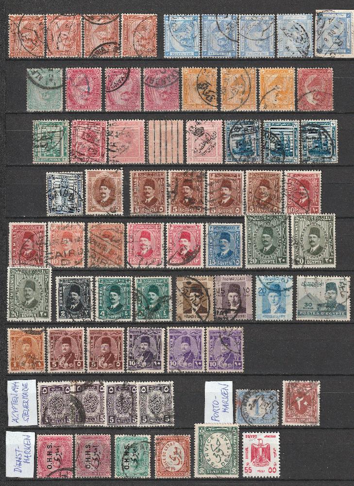 Lot Ägypten 1879-2011 (inkl.einige United Arab Republic) Einige Dienstmarken, Steuermarken, Portomarken und Farbvarianten Satz aus 1974, Mi1151-1154 Flugpostmarken sind postfrisch, alle anderen Marken gestempelt, tw. auf Papier -wie abgebildet- Paypal=möglich