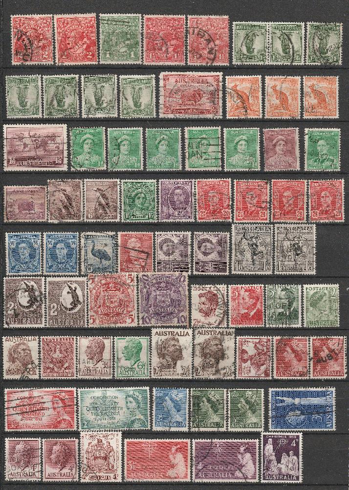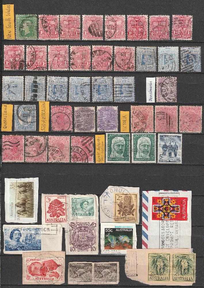 LOT AUSTRALIEN +australische Staaten vor 1900, gestempelt Foto 1/ New South Wales, Queensland, Süd-Australien, Victoria, Austr.Antarktis-Territorium, austral.Marken auf Papier Foto 2+3 Australien ab ca.1922 unterschiedliche Wasserzeichen, Farbvarianten Teilweise auf Papier -wie abgebildet- Paypal=möglich
