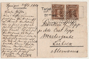 AK Chile, Iquique. Gel. 1910 nach Lübeck. Stecknadelstich oben, u.r. akzept. Eckknick.