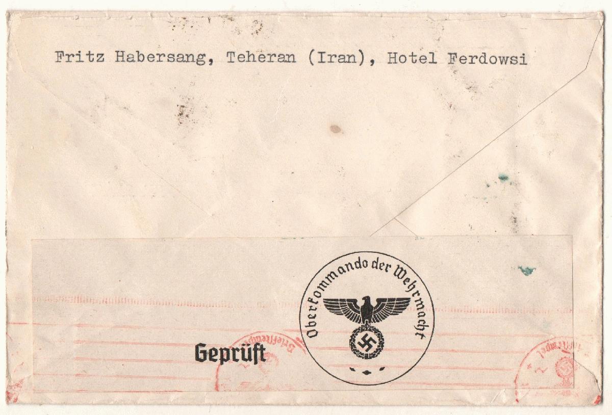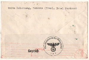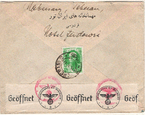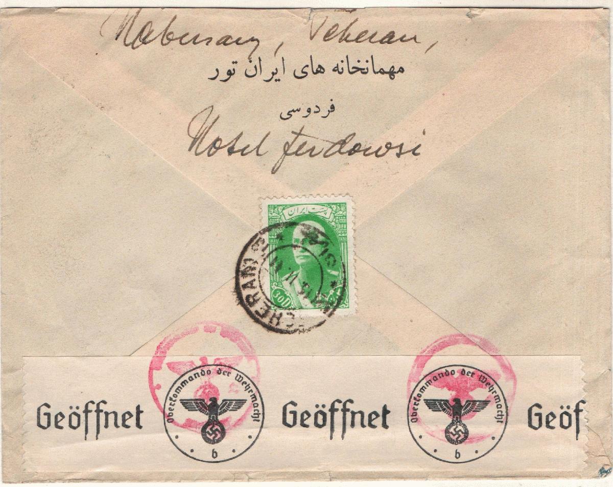 2 Belege Teheran-Dü`dorf 1940/41, jew. mit Zensurmerkmal.