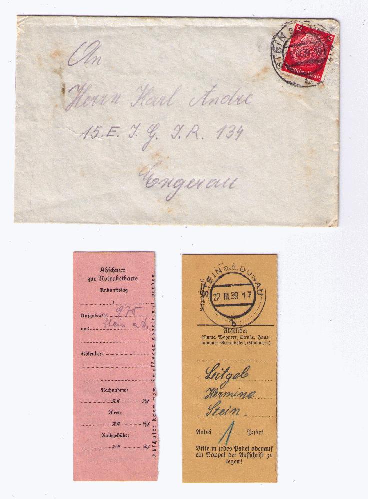 Der Einlieferungsschein sowie der "Abschnitt zur Notpaketkarte" befinden sich im Umschlag.