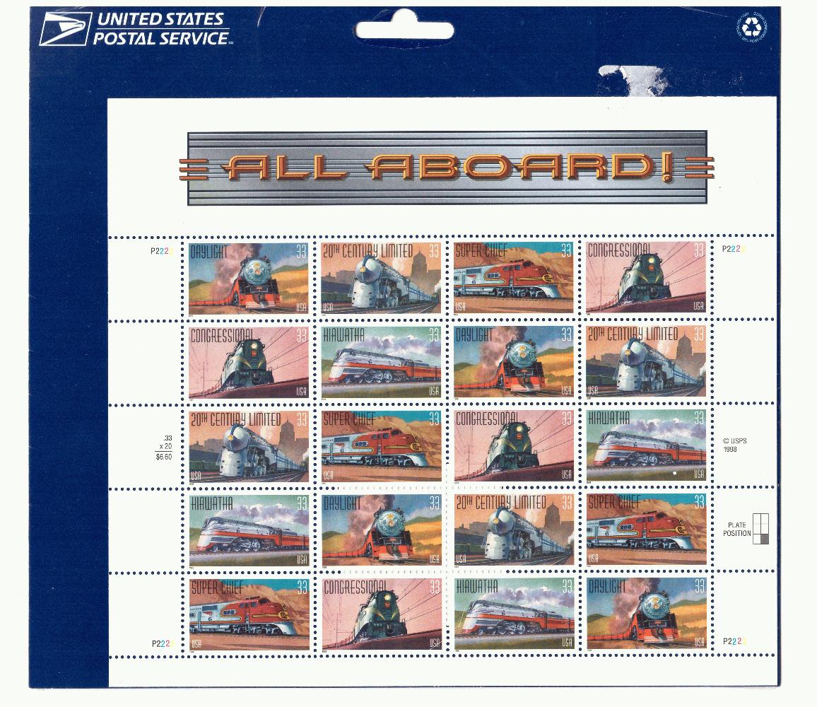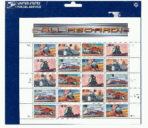 Folienblatt USA „Alle einsteigen“ noch in Original Verkaufsverpackung = Preis $ 6,60