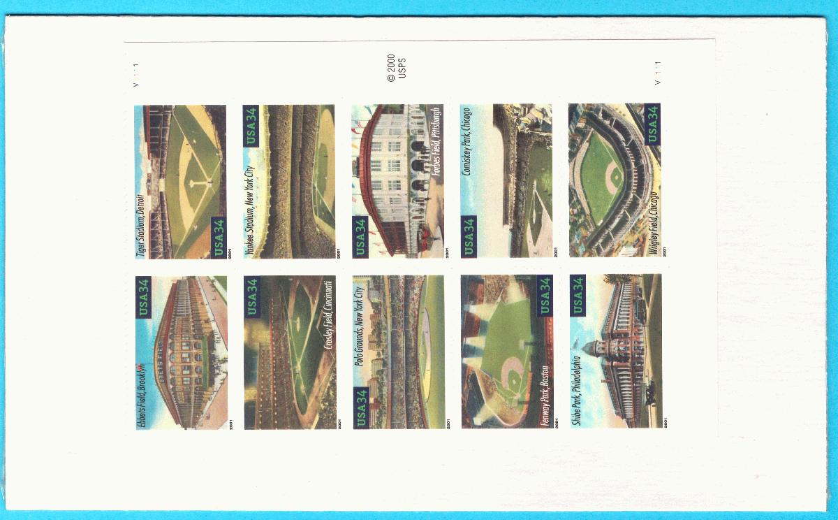 Folienblatt USA „Baseball Stadien“ noch in Original Verkaufsverpackung = Preis $ 3,40