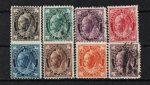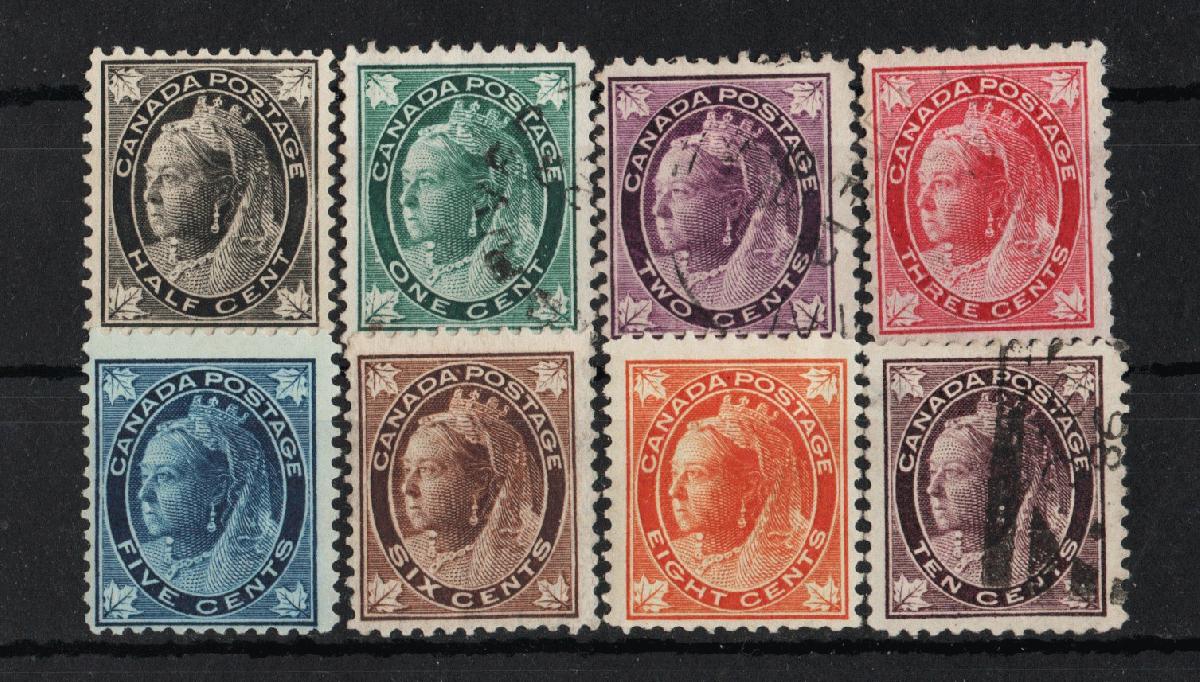 Freimarkensatz mit Ahornblatt in den Ecken. Ungebraucht mit Falz und gestempelt, siehe Scan. Michel = EUR 450,--