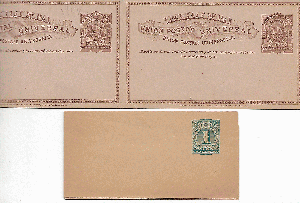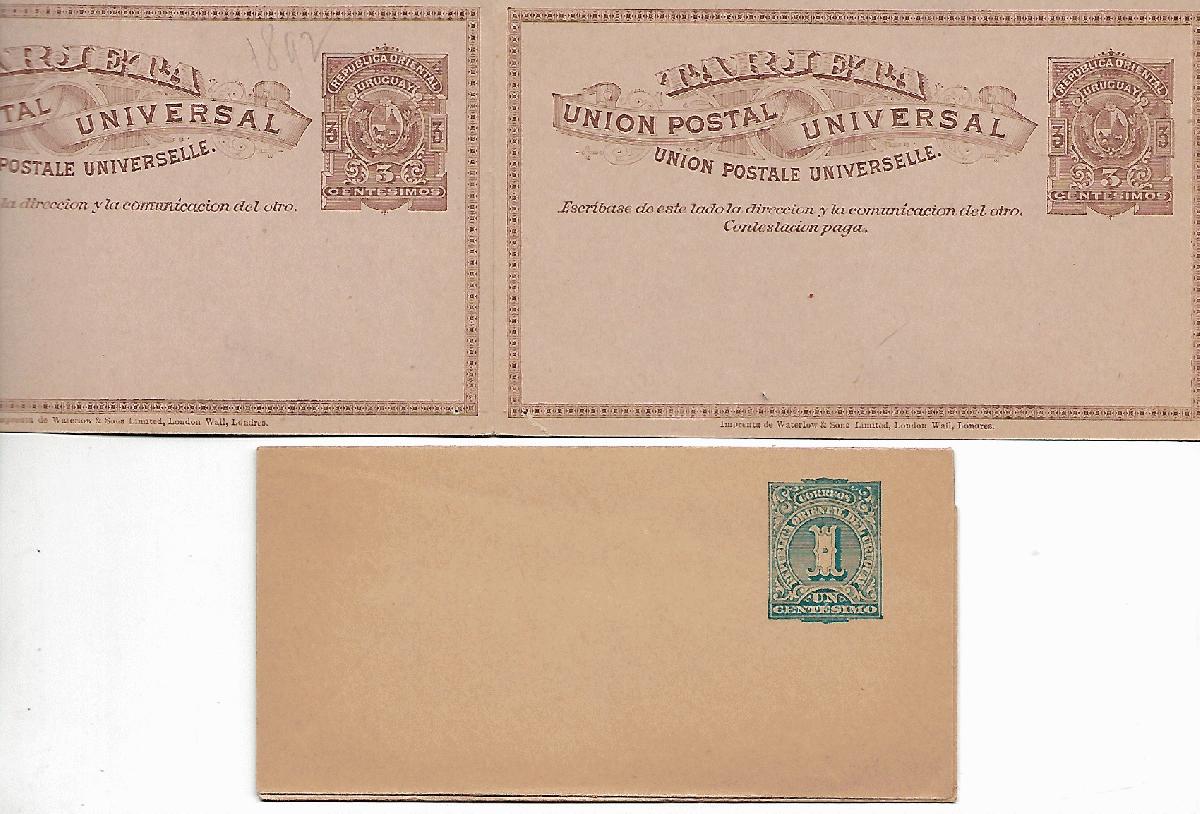 2 Ganzsachen Uruguay< davon 1x Antwort-GZ, beide ungebraucht, durch große breite der aufgeklappten GZ nur Teilabbildung