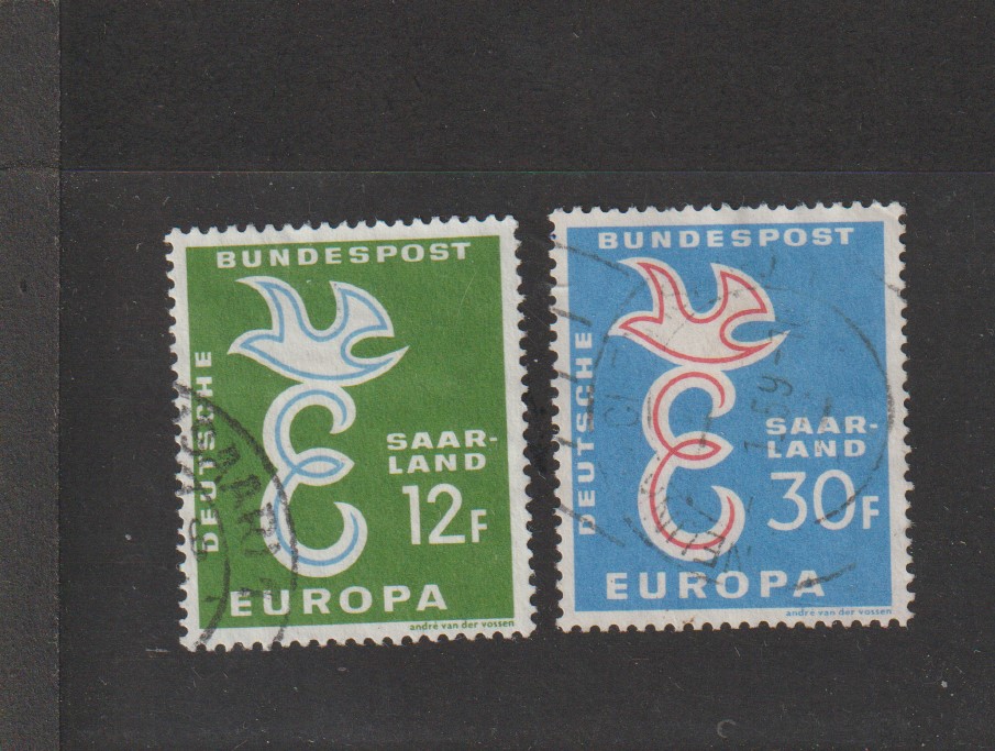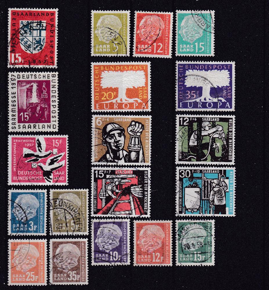 Saarland Nr. 379, 384, 387, 400, 402 bis 408, 410, 411, 413 bis 415, 418, 420, 439, 440 gestempelt, Ersttagsbrief 439+440, Michel 21,70 €