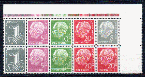 Gebe ein Heftchenblatt vom Bogen - Oberrand ab. Es handelt sich um HB 8Y, Zwischensteg ohne Strichleisten. Die Marken sind einwandfrei postfrisch.