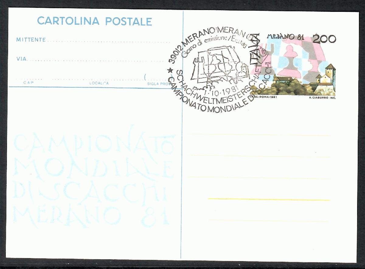 Los: IT-Ganzsache mit SStmp Schachweltmeisterschaft Jg1981 unbeschrieben