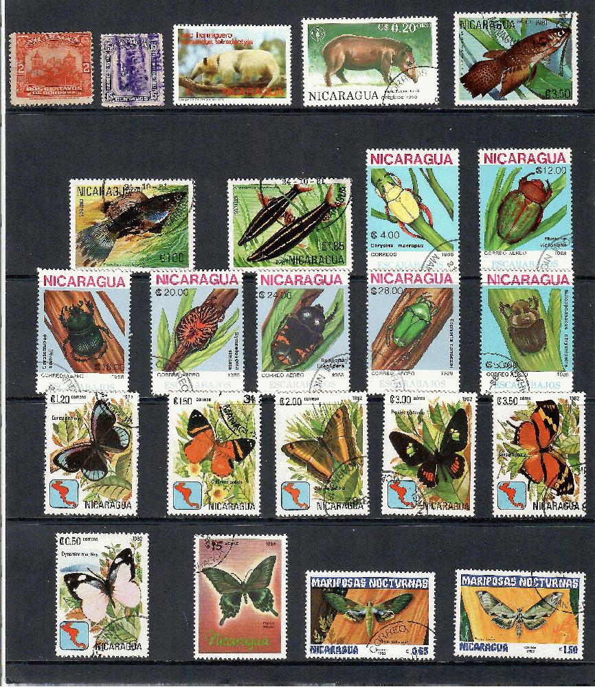 Los: Nicaragua-Seite Insekten und sonstiges gestempelt