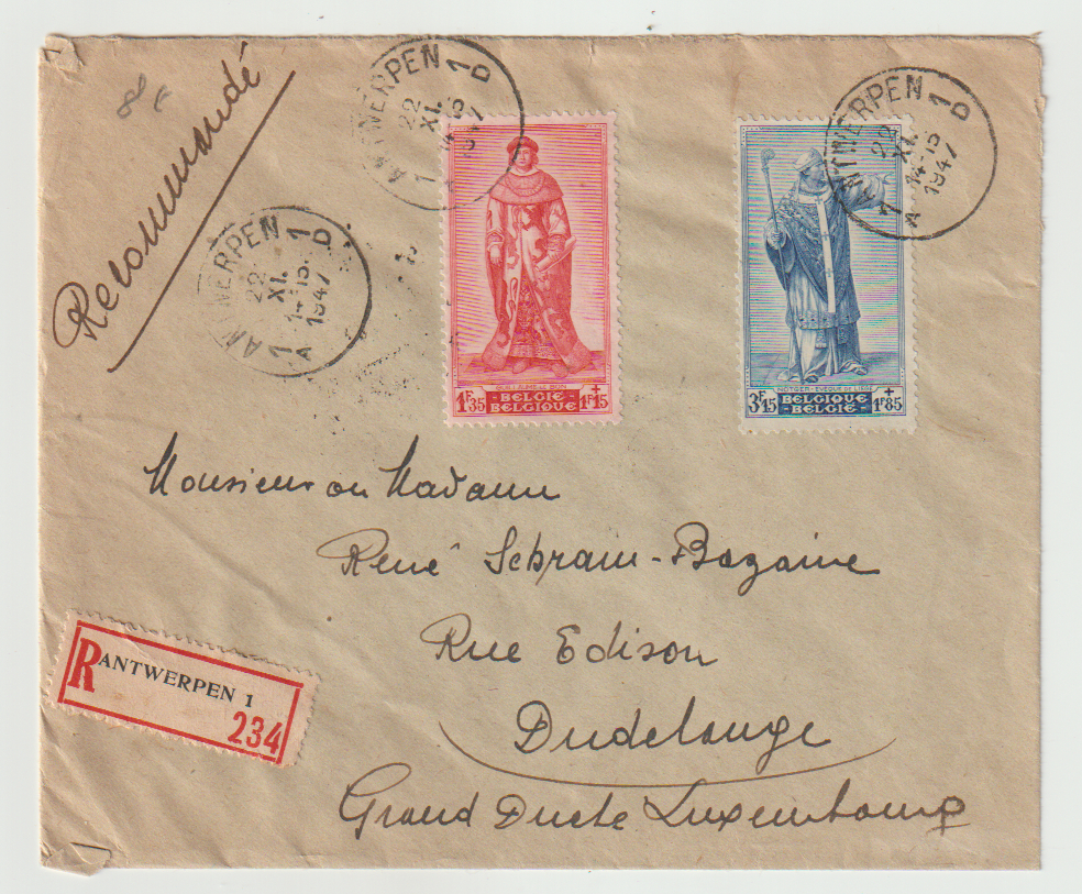 Belgien Einschreiben mit MiNr 795/6 nach Luxemburg