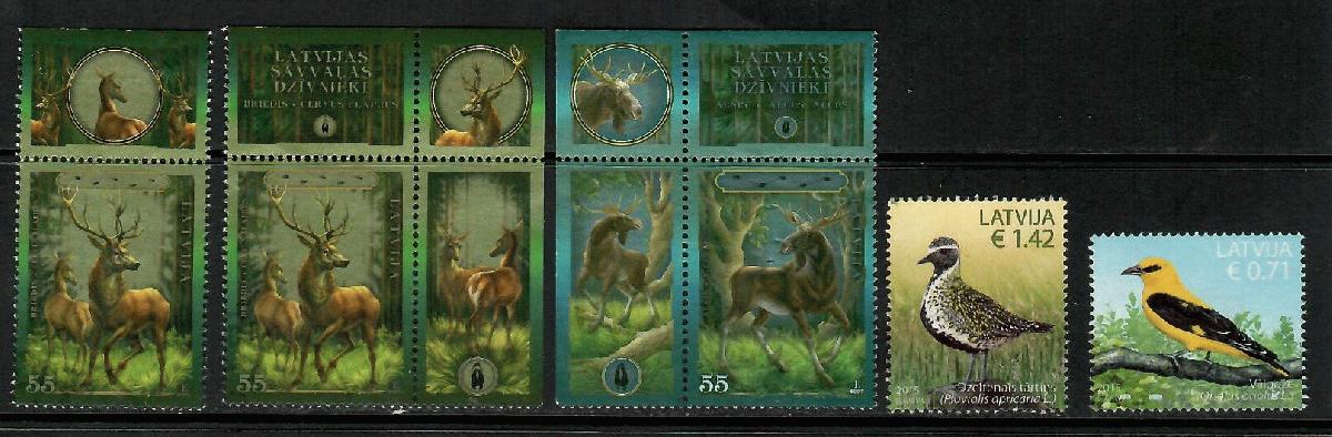 Los: Lettland-5 Marken ungestempelt Tiere(Hirsche, Vögel